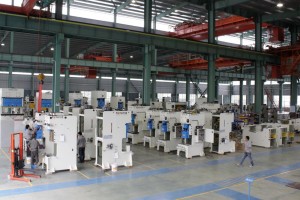 生產能力:東雄機床有限公司工廠共有五個生產車間,其中三個大型裝配車間配備6臺行車較大100噸吊重能力, 配備2千噸裝配能力大型組立坑道。適合生產15~2000噸的各類沖床。
